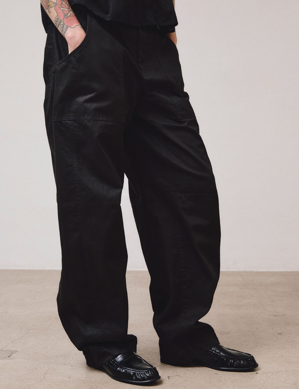 - 가먼트 워싱 가공의 카펜터 팬츠 - 빈티지한 페이드 감이 매력인 해외 수입 피그먼트 소재 - 고밀도의 견고한 조직으로 내구성이 좋음 - 뒷면에 조절 가능한 허리 비죠 - 무릎 다트 디테일과 4개의 포켓