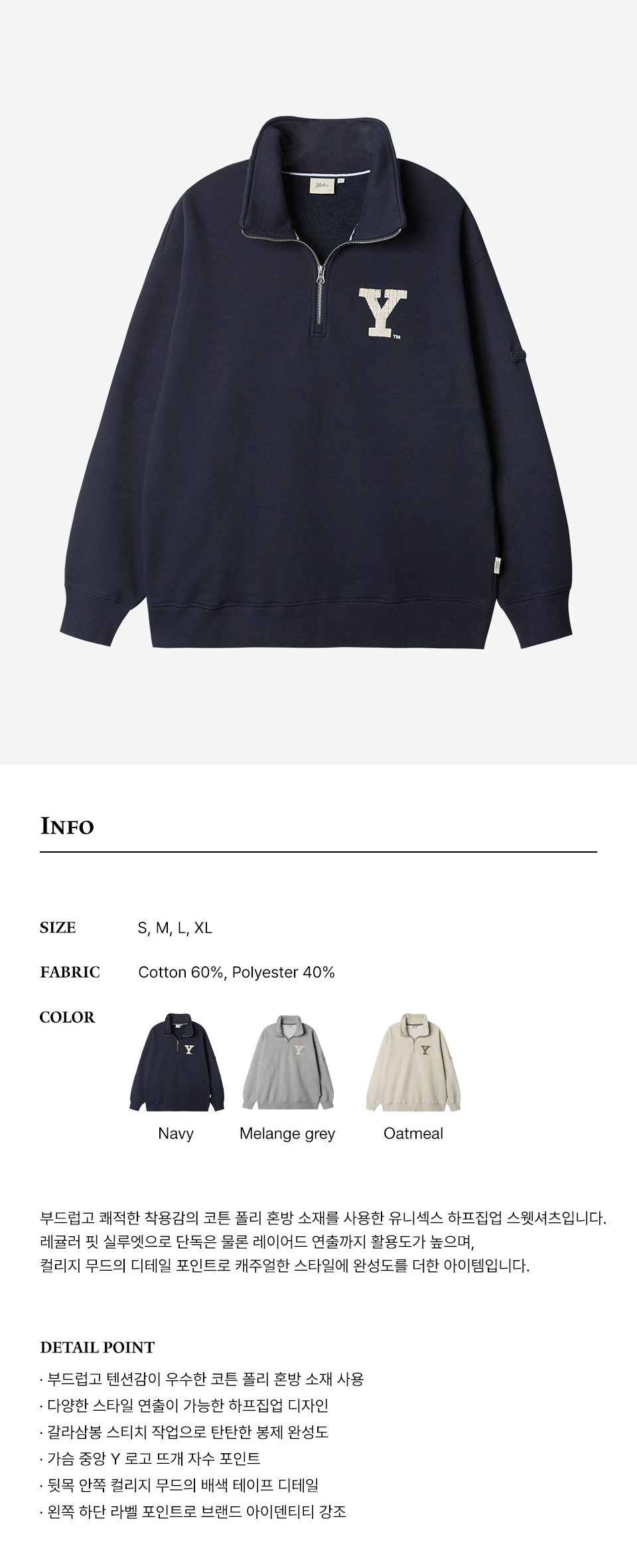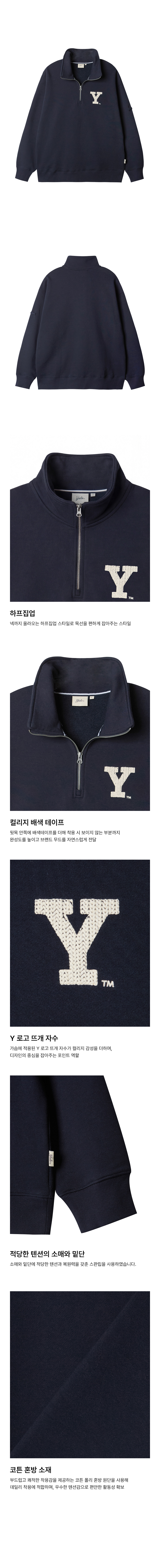 에일 Y 로고 하프집업 스웻셔츠_네이비