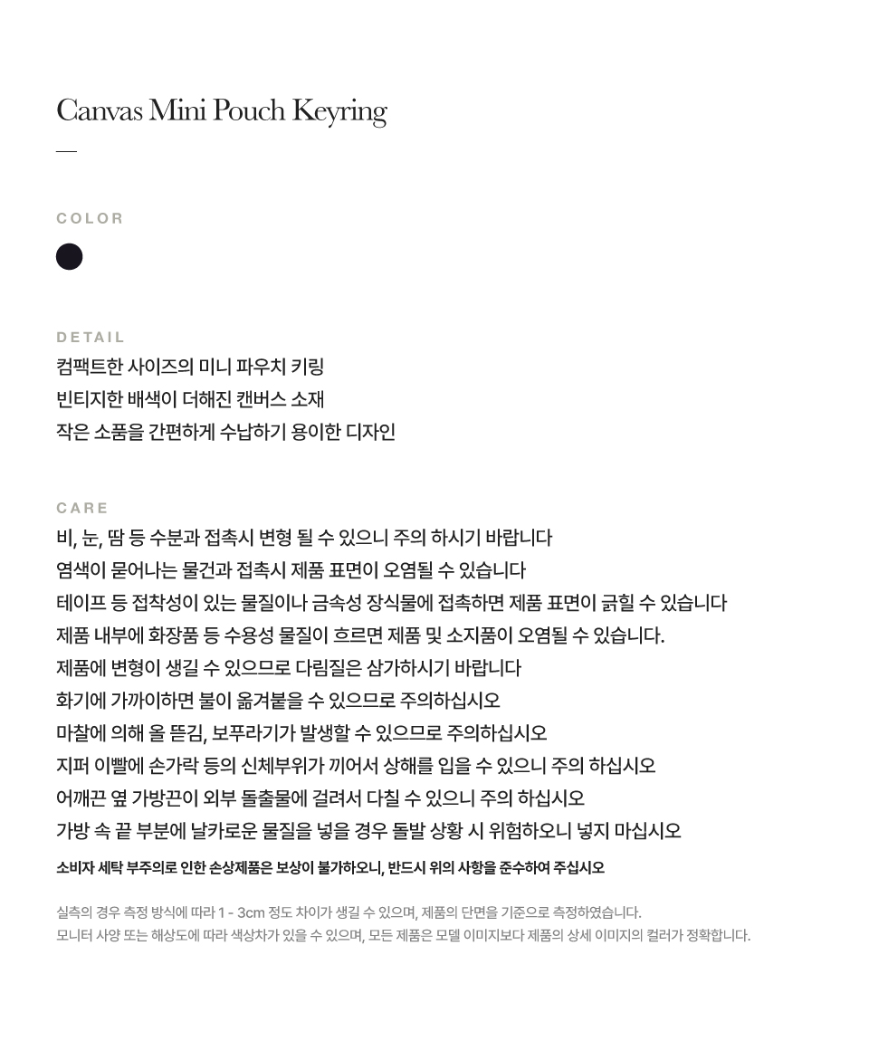 측정 방법에 따라 사이즈에 일부 오차가 있을 수 있습니다.