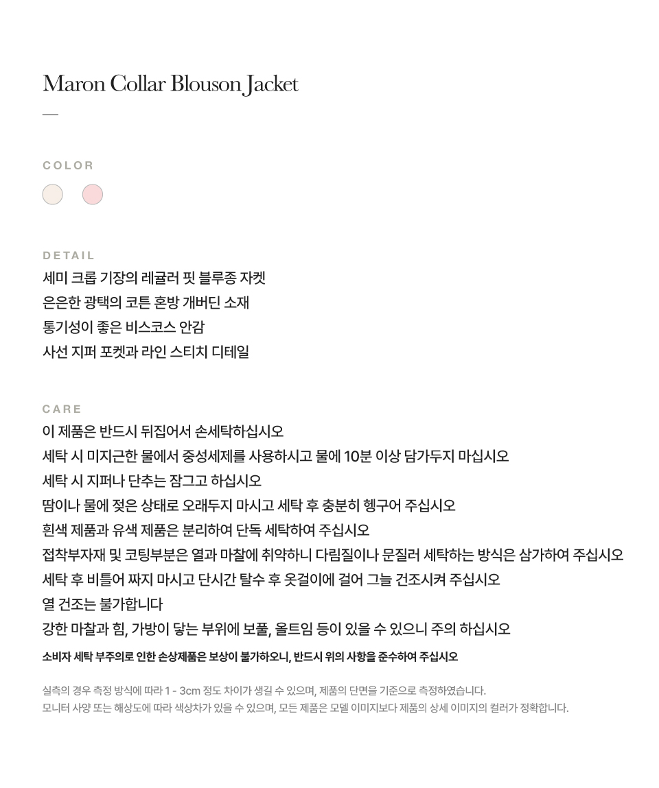 [사은품 증정] 세터 우먼 마론 칼라 블루종 자켓 크림