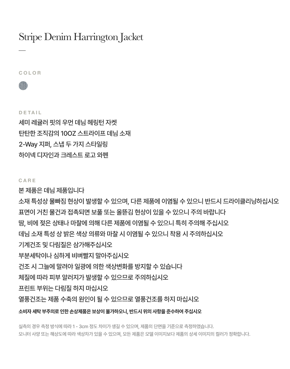 [사은품 증정] 세터 우먼 스트라이프 데님 헤링턴 자켓 블루