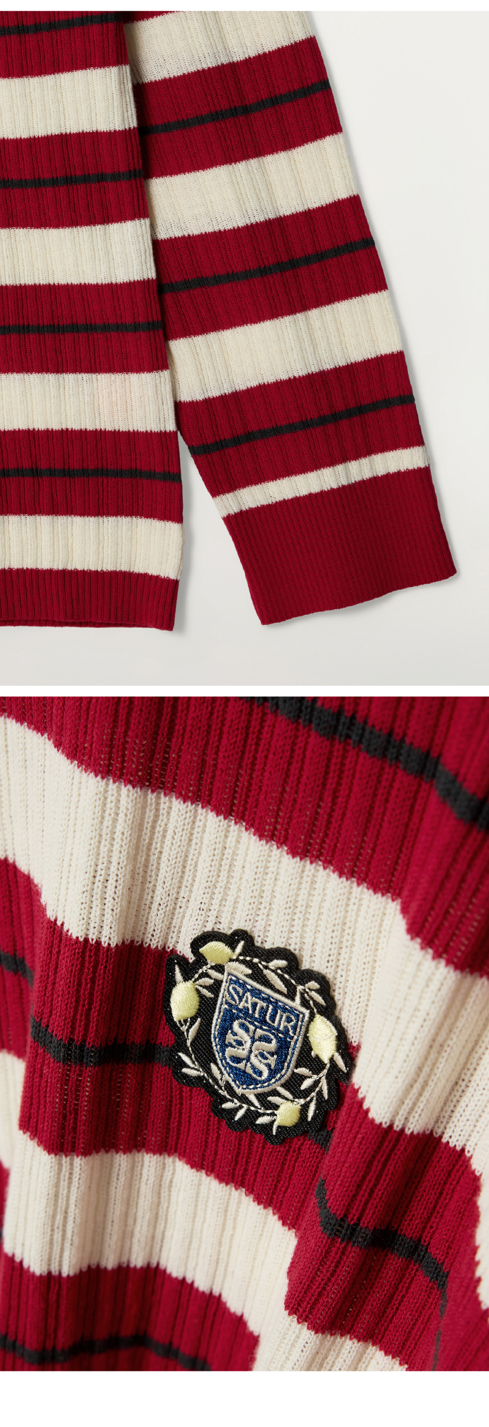 [사은품 증정] SATUR Crest Logo Stripe Knit Red