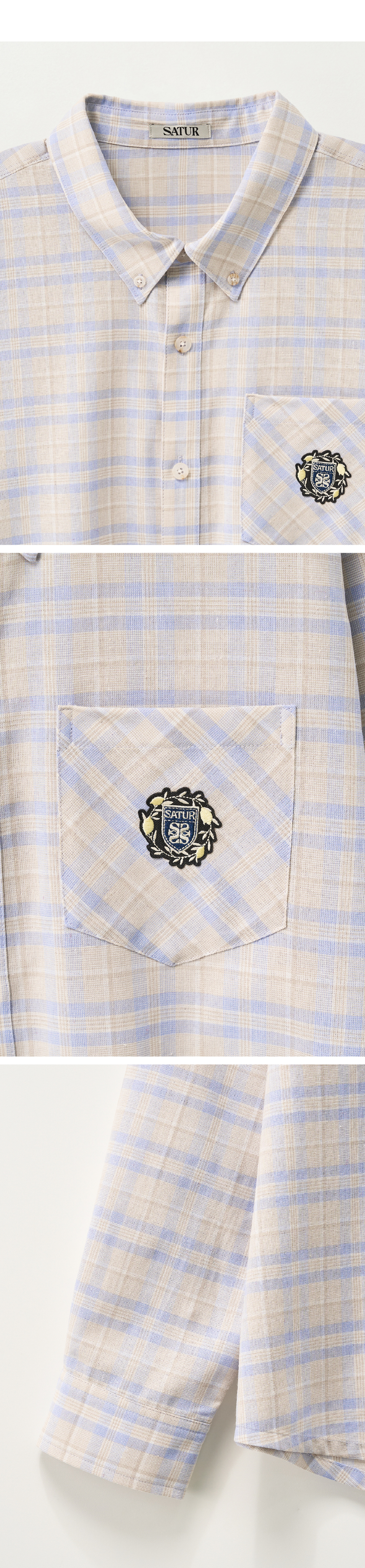 [사은품 증정] SATUR Crest Logo Check Shirt Sky Blue