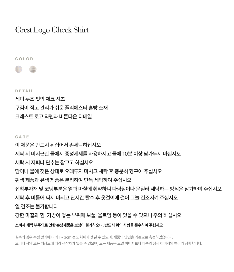 [사은품 증정] 세터 크레스트 로고 체크 셔츠 스카이 블루