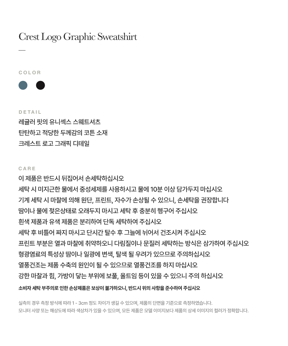 측정 방법에 따라 사이즈에 일부 오차가 있을 수 있습니다.