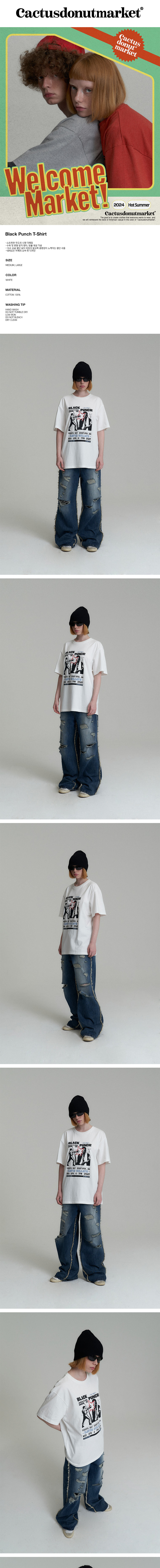캑터스도넛마켓 블랙 펀치 티셔츠 – 화이트