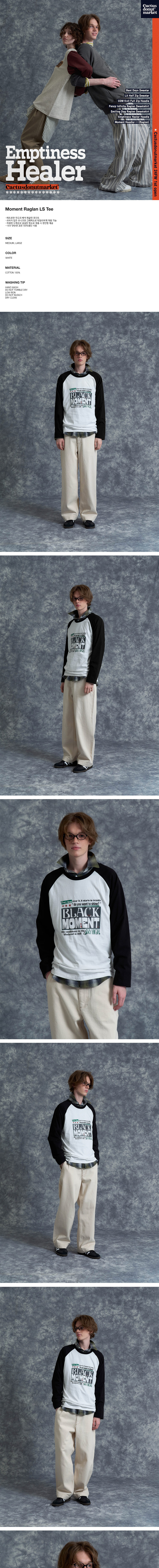 캑터스도넛마켓 모먼트 래글런 긴팔 티셔츠 – 화이트