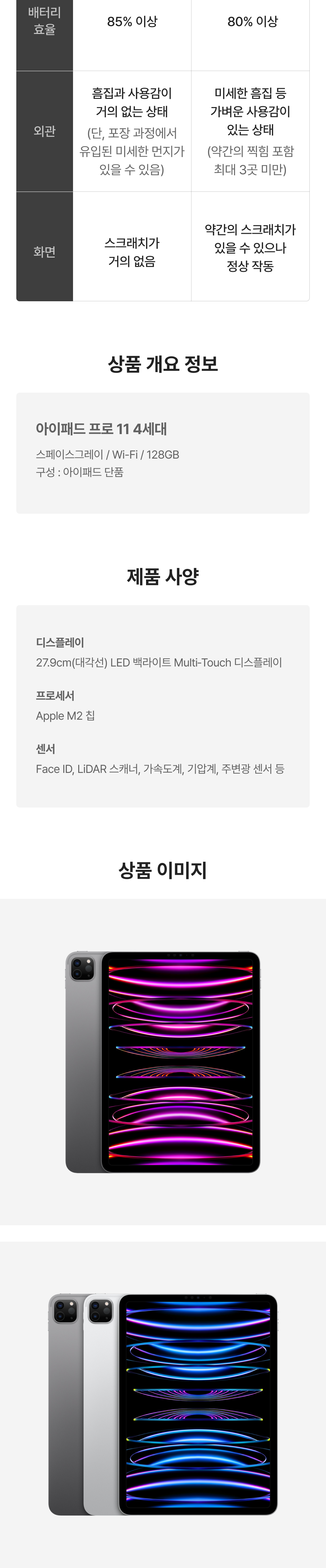 [A등급] 리퍼비시 아이패드 프로 11 4세대 wifi 128기가 스페이스그레이