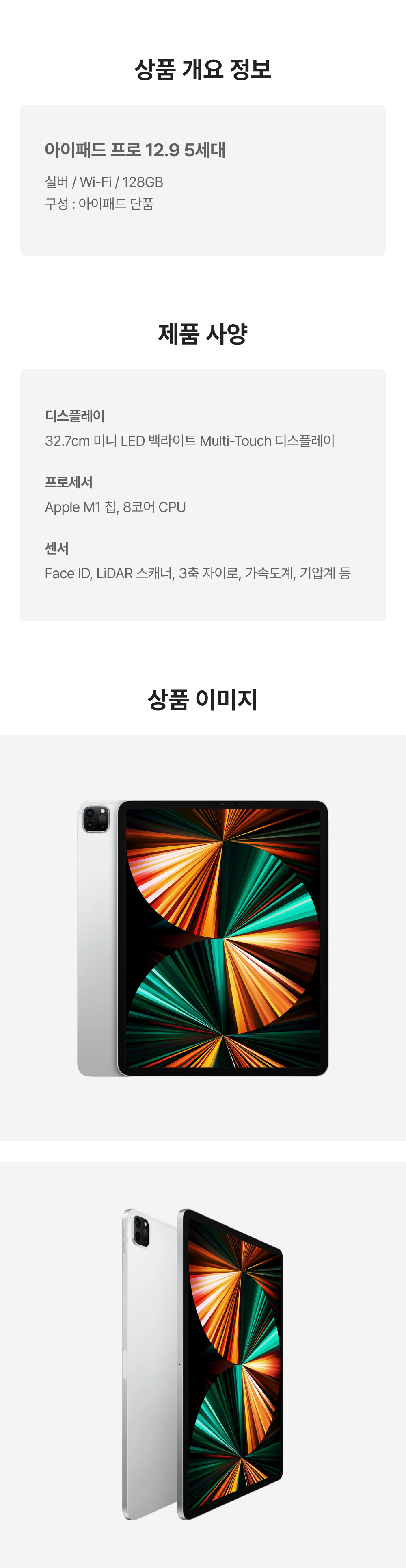 [S등급] 리퍼비시 아이패드 프로 12.9인치 5 wifi 128기가 실버