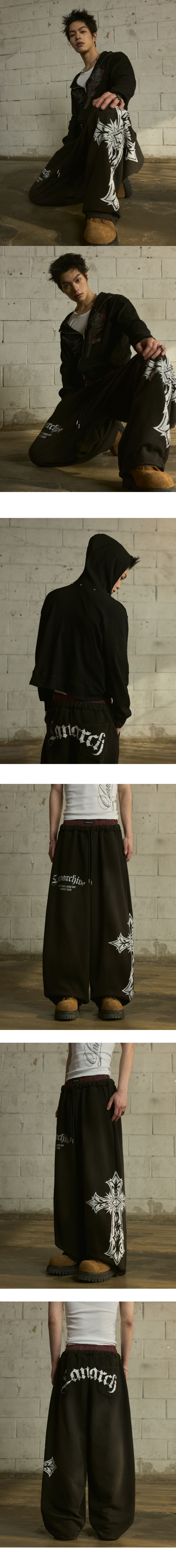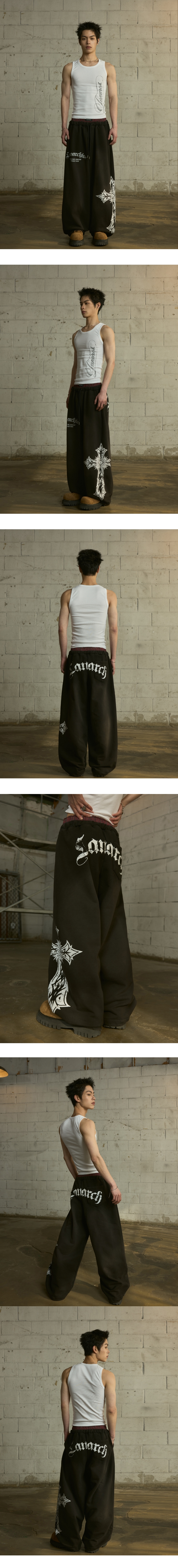 LAN ARCHIVE 0123 Sagging Band Wide Sweat Pants - Black