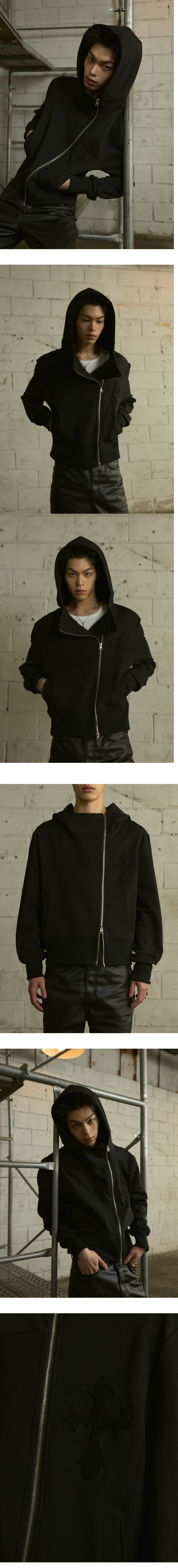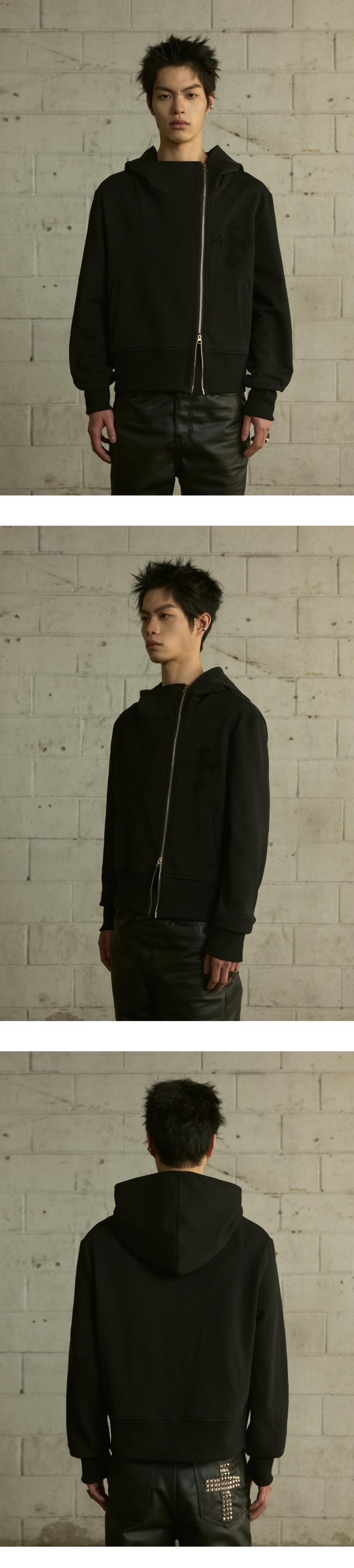 LAN ARCHIVE 0118 Cross Embroidery Zip-up Hoodie - Black