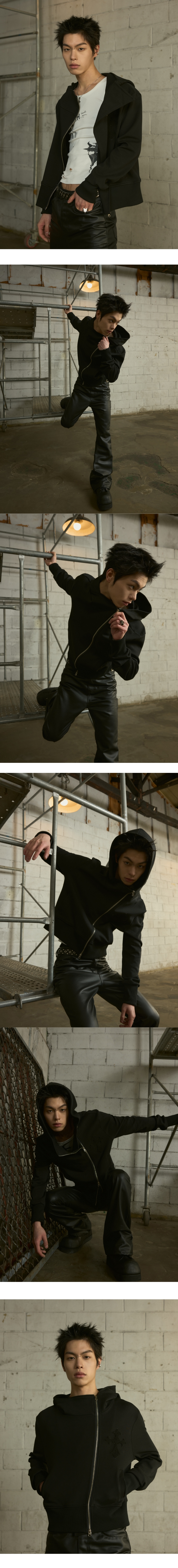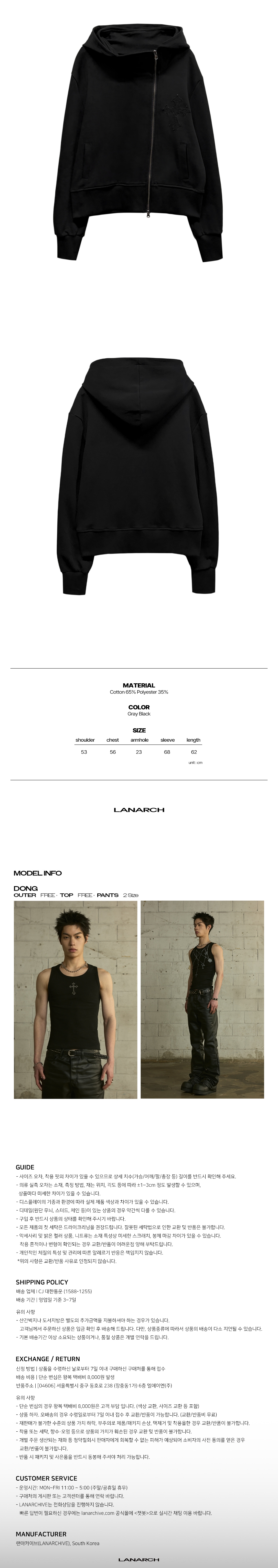랜 아카이브 0118 크로스 자수 집업 후디 - 블랙