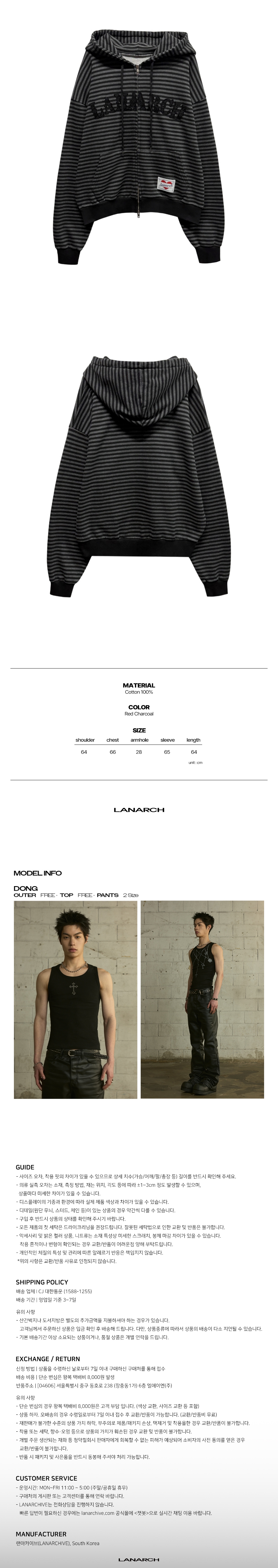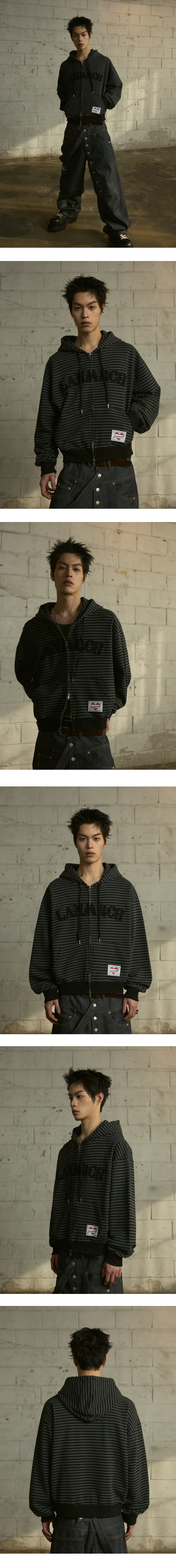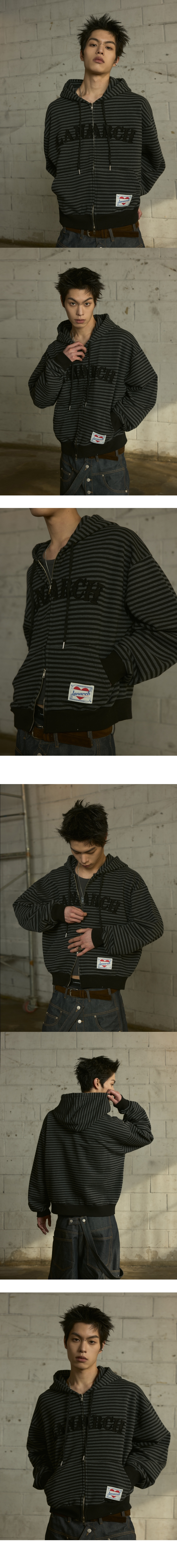 랜 아카이브 0116 로고 아플리케 스트라이프 집업 후디 - 블랙