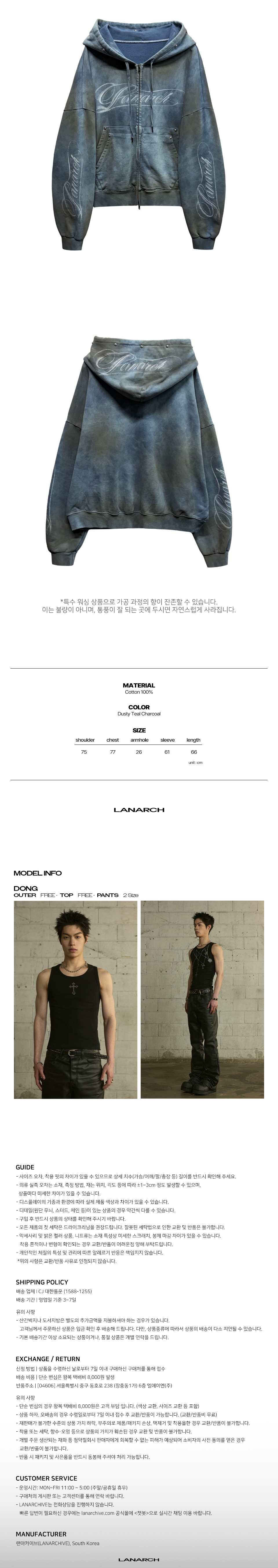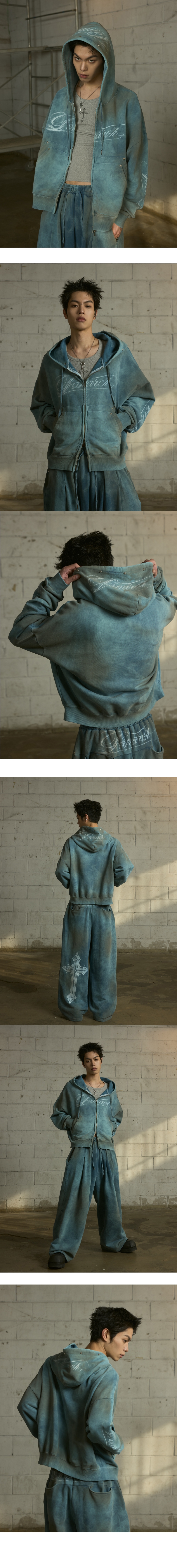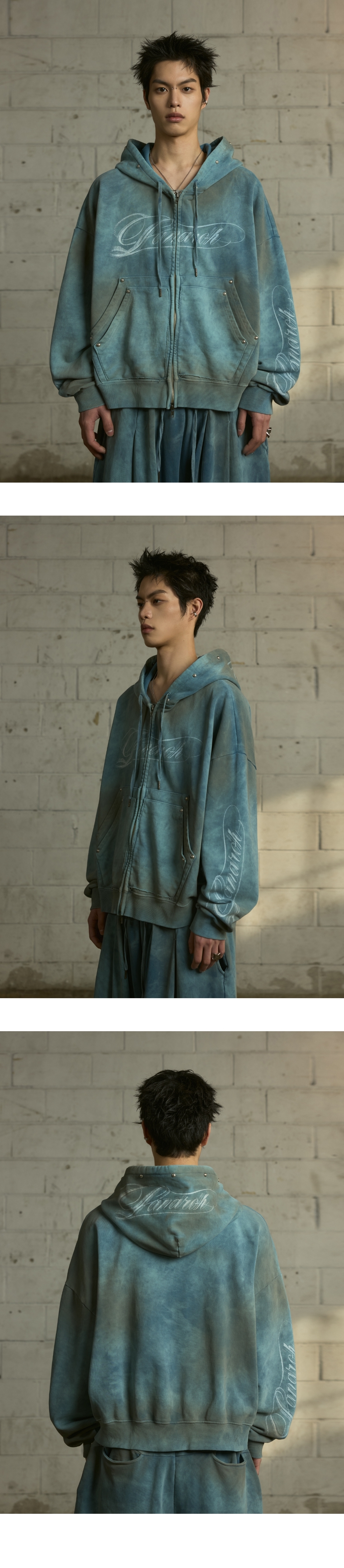 랜 아카이브 0112 빈티지 워시드 스터드 로고 집업 후디 - 더스티 틸