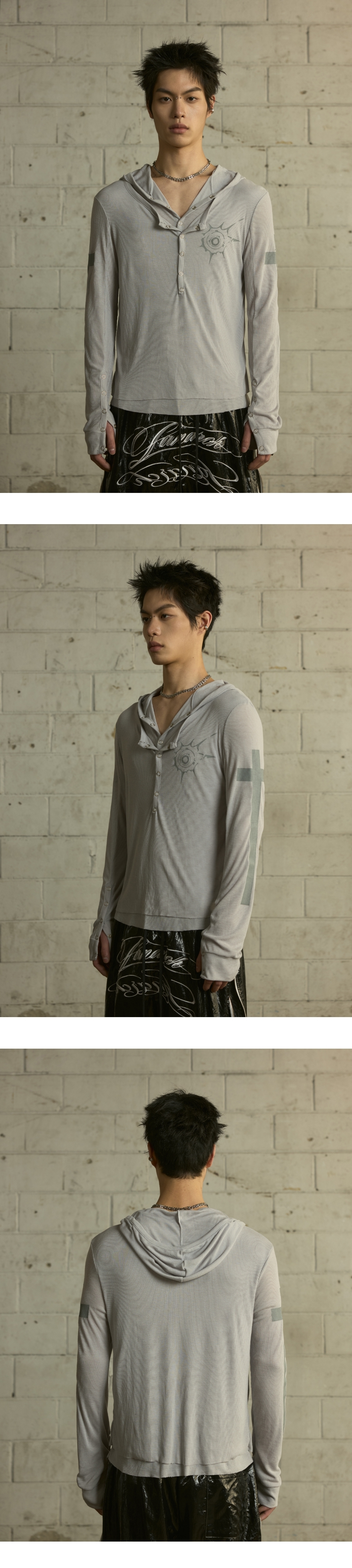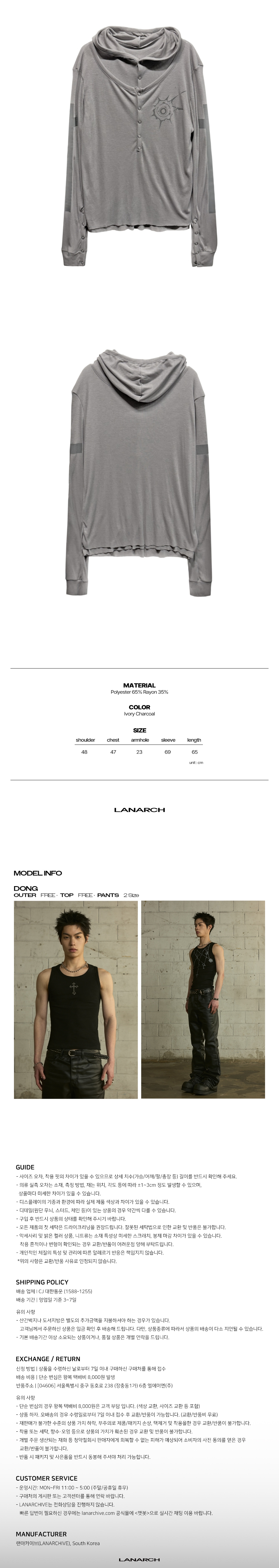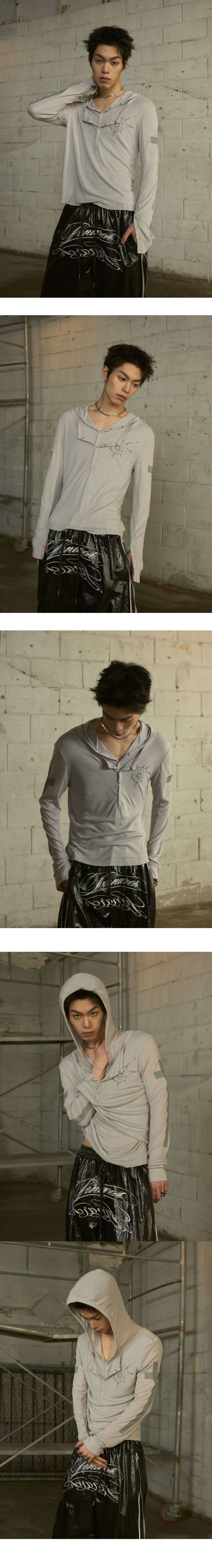 랜 아카이브 0111 스냅 레이어드 후드 롱슬리브 - 아이보리
