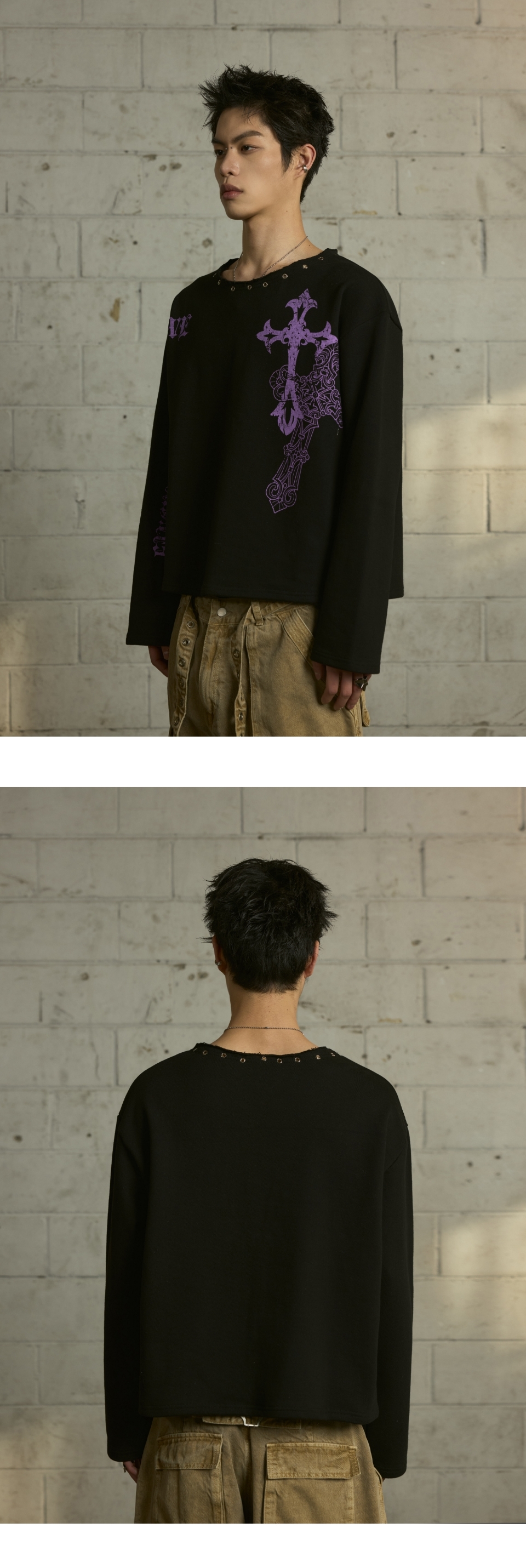 LAN ARCHIVE 0109 Cross Eyelet Neck Long Sleeve - Black