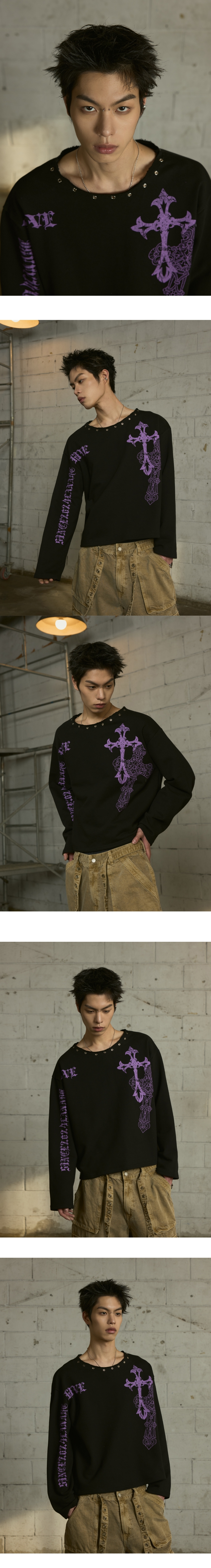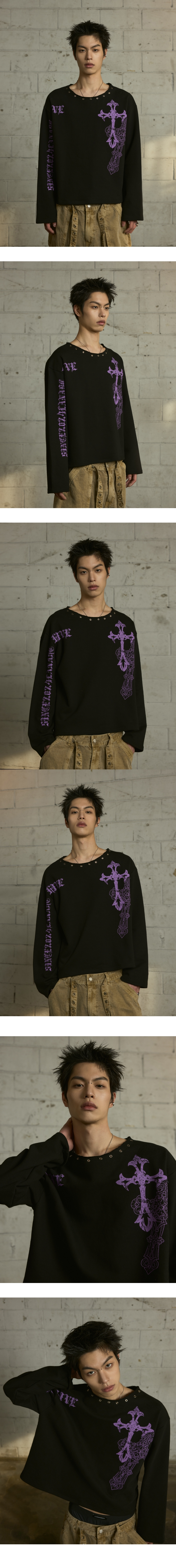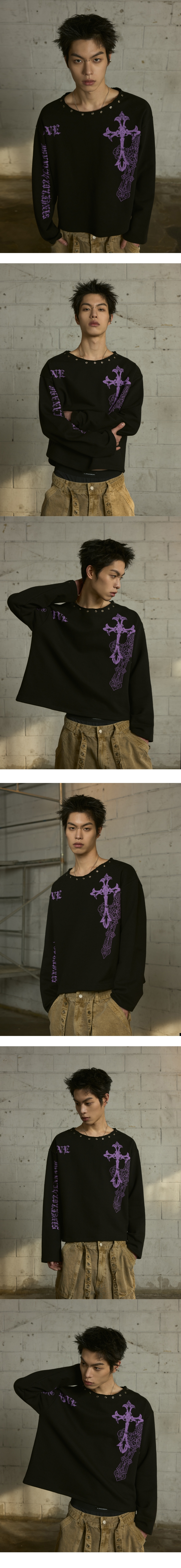 랜 아카이브 0109 크로스 아일렛 넥 롱슬리브 - 블랙