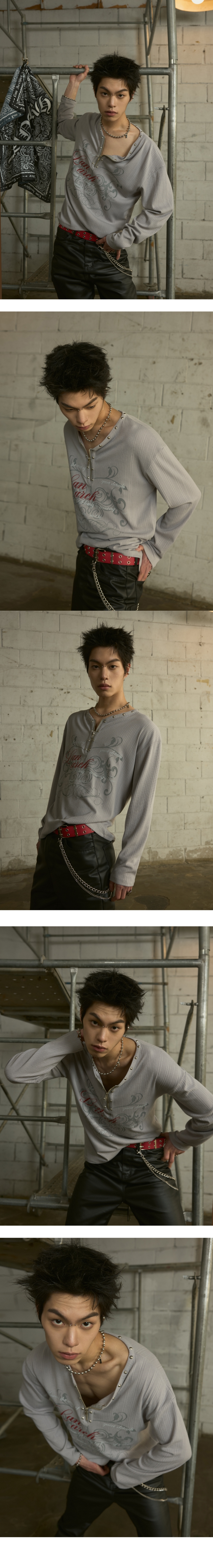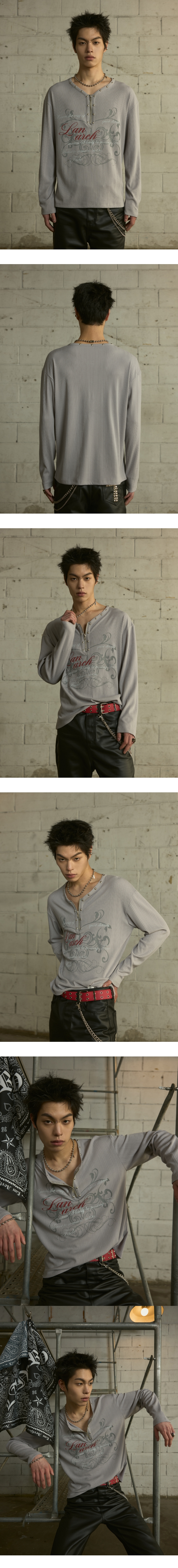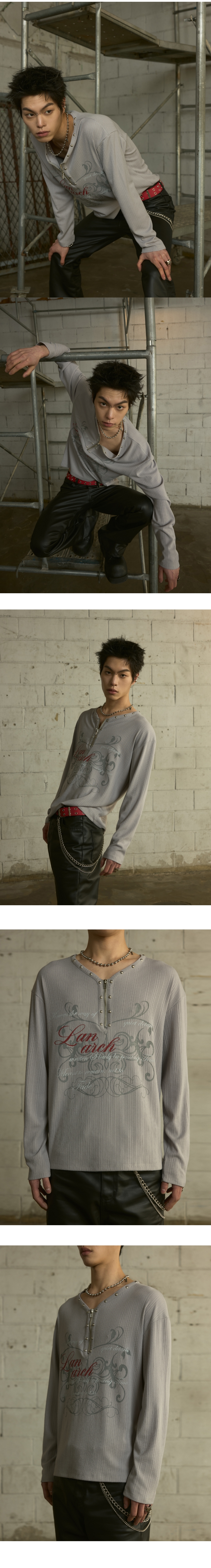 LAN ARCHIVE 0108 Rivet Henleyneck Zipper Long Sleeve - Gray