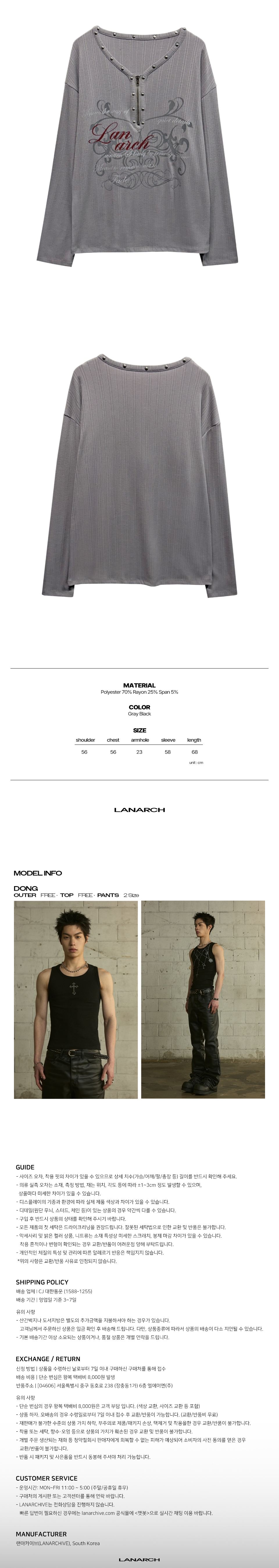 랜 아카이브 0108 리벳 헨리넥 지퍼 롱슬리브 - 그레이