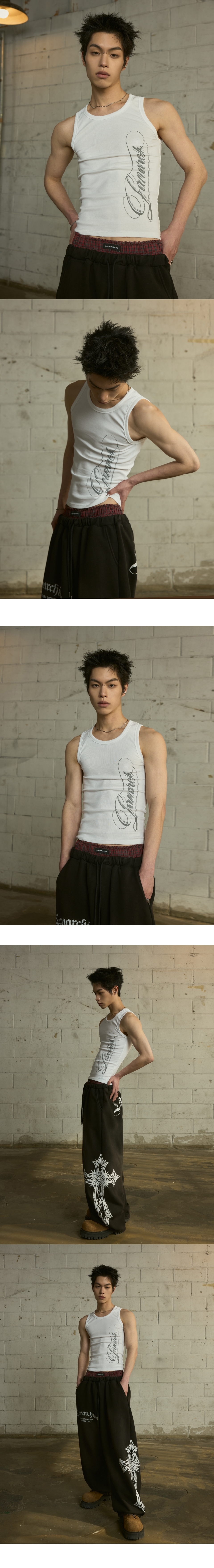 LAN ARCHIVE 0102 Side Typography Sleeveless - White