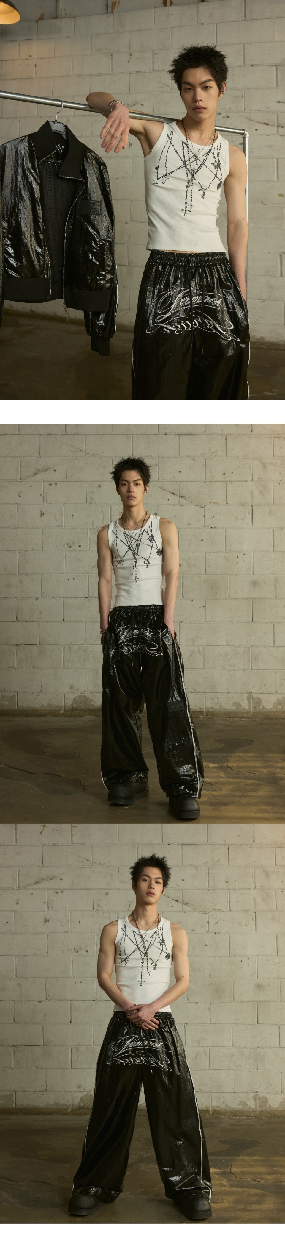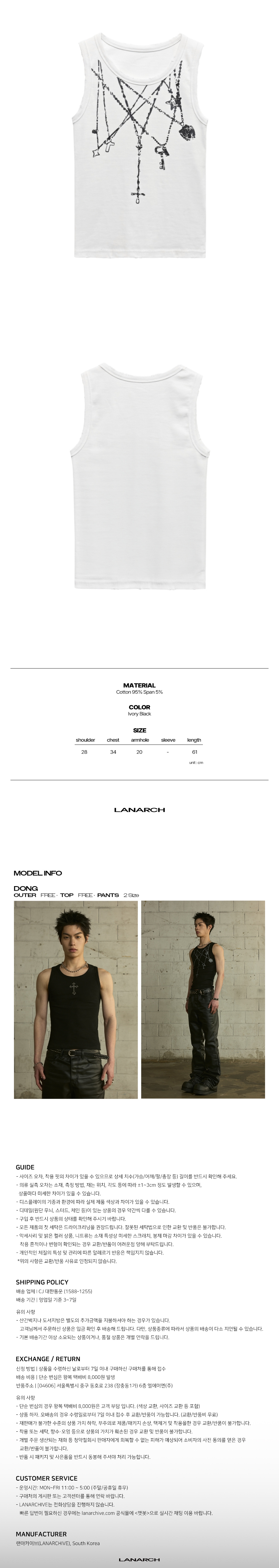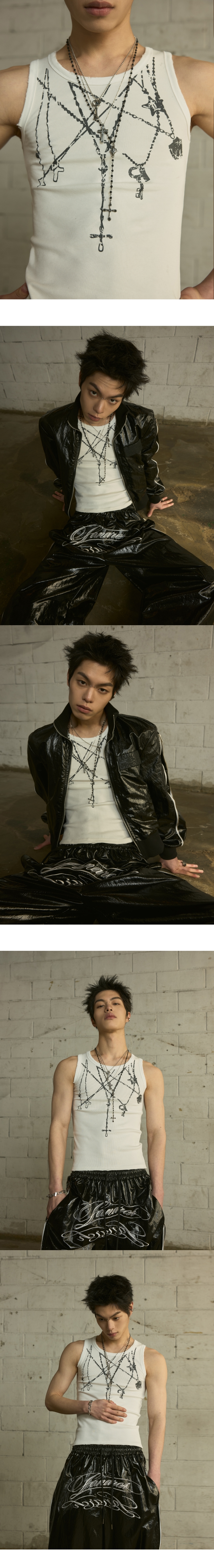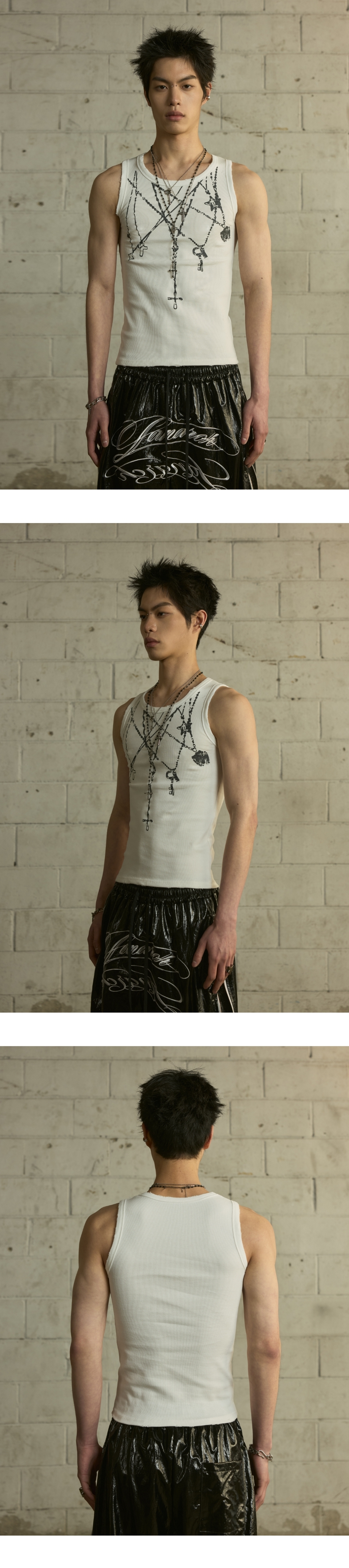 랜 아카이브 0101 체인 목걸이 프린트 슬리브리스 - 아이보리