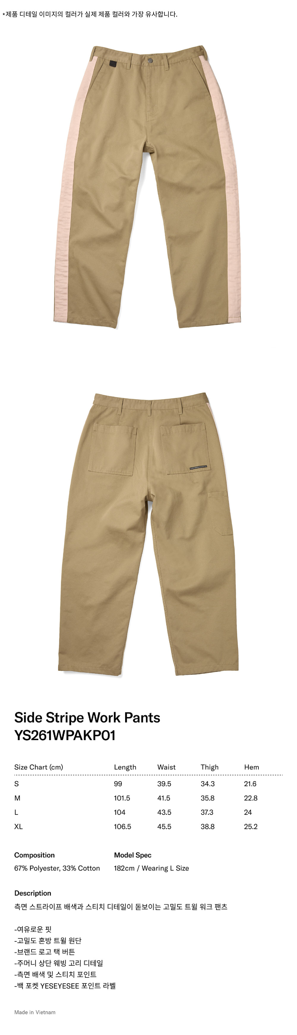 [더블적립] YESEYESEE Side Stripe Work Pants Beige