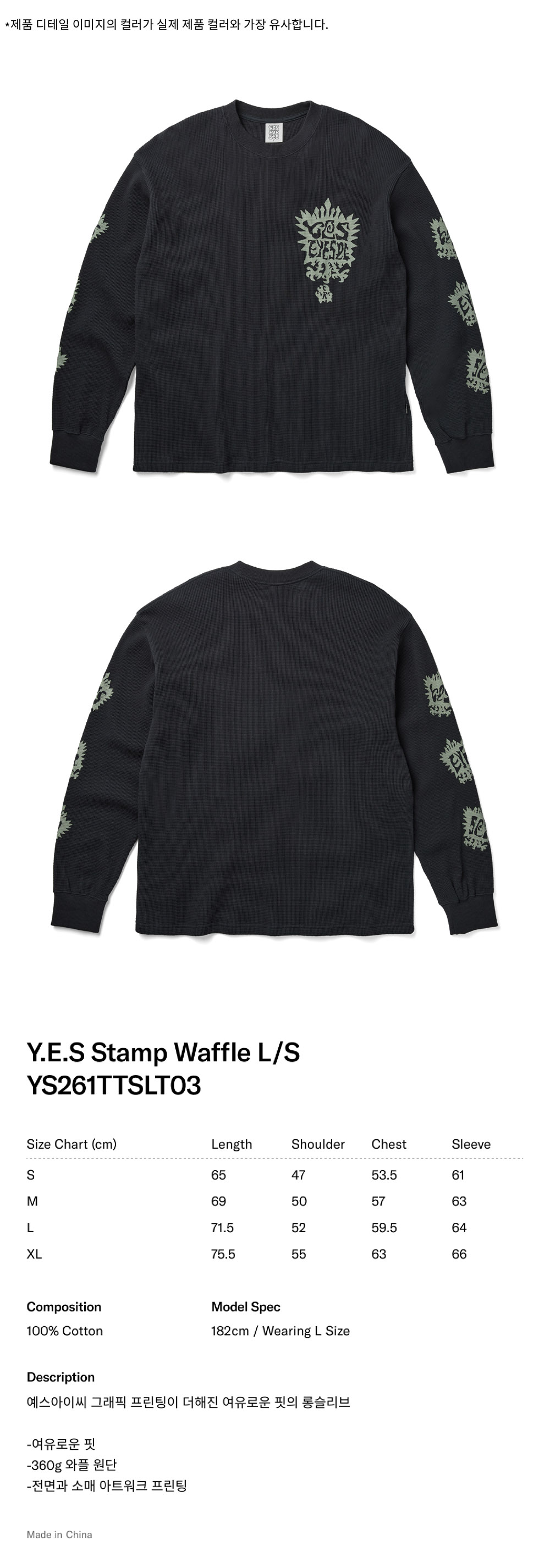 [더블적립] YESEYESEE Y.E.S Stamp Waffle L/S Charcoal