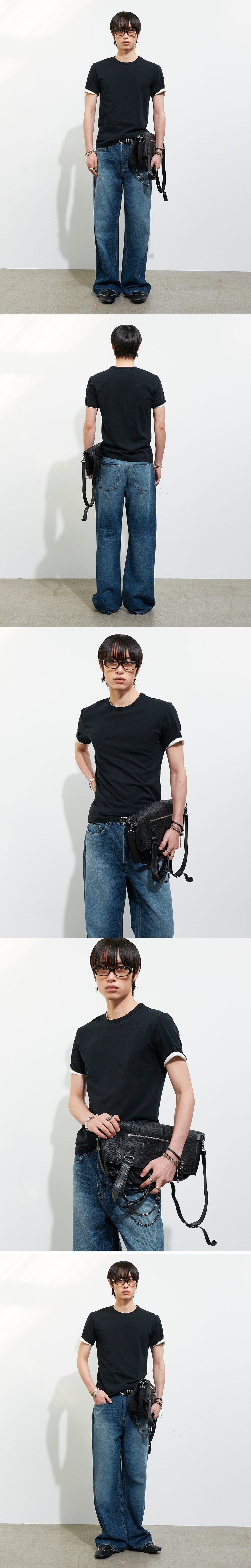 슬림한 실루엣으로 제작된 크루 넥 티셔츠입니다. 바디 라인을 따라 자연스럽게 정리되는 핏이 특징입니다. 과하지 않은 두께감과 균일한 표면감으로 단정한 인상을 완성합니다. 단독은 물론 이너로도 활용하기 좋은 기본 아이템입니다. -DETAIL- 슬림 실루엣 크루 넥 디자인 숏 슬리브 동일 원단 넥 마감 MADE IN KOREA