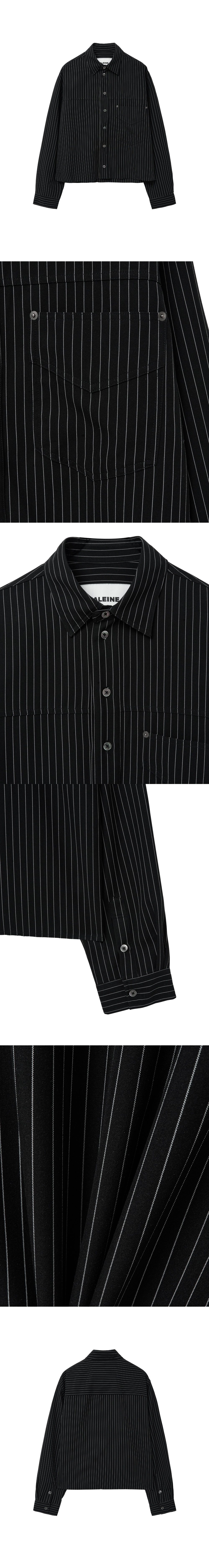 알렌느 컷오프 크롭 스트라이프 셔츠 블랙