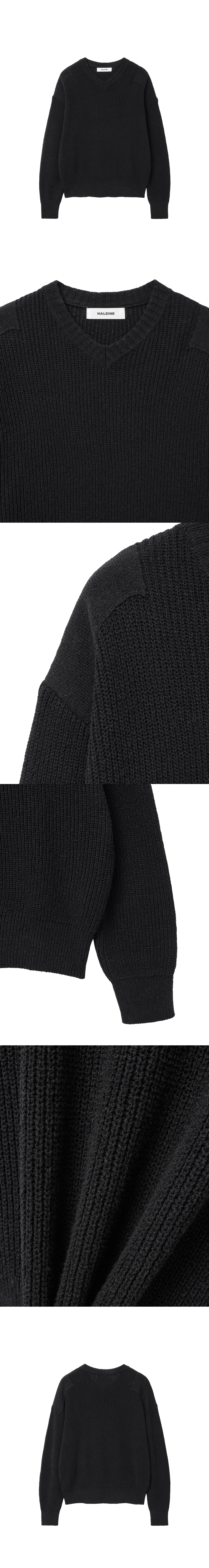 알렌느 크롭 브이넥 릴렉스드 니트 블랙