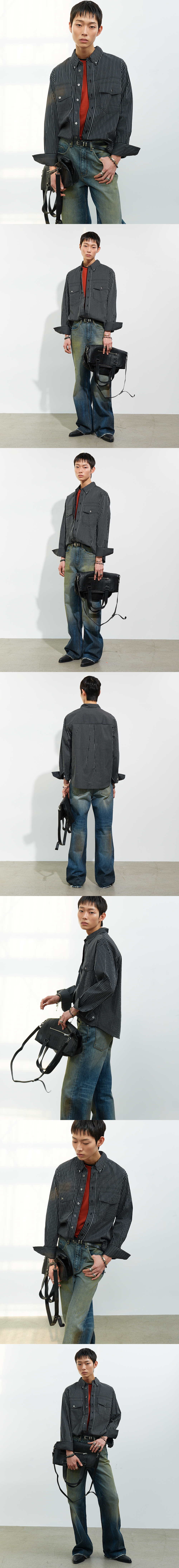 스트라이프 패턴이 돋보이는 버튼다운 셔츠입니다. 레귤러 실루엣에 자연스러운 여유를 더해 편안하게 착용할 수 있으며, 가슴 플랩포켓 디테일로 실용성과 디자인 포인트를 더했습니다. 단정한 버튼다운 칼라와 스트라이프 패턴이 조화를 이루어 캐주얼하면서도 세련된 분위기를 완성합니다. 단품 또는 레이어드 스타일링으로 간절기 시즌에 활용하기 좋은 아이템입니다. -DETAIL- 스트라이프 패턴 레귤러 실루엣 가슴 플랩포켓 버튼다운 칼라