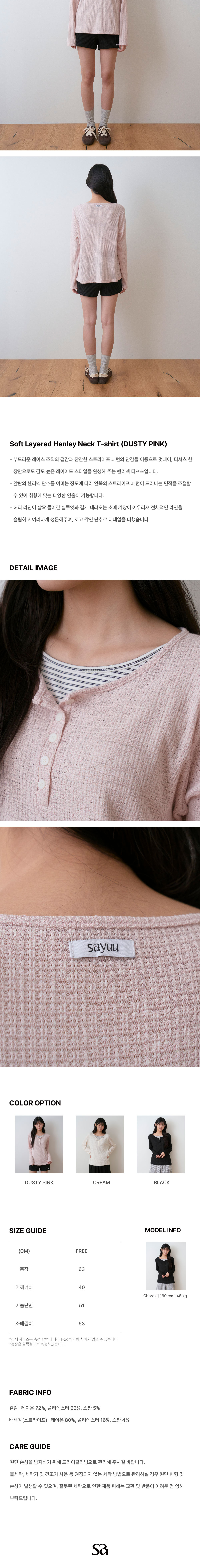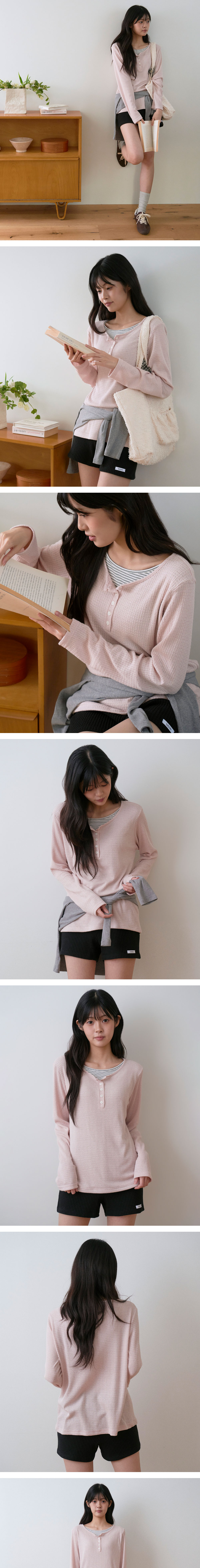 사유 소프트 레이어드 헨리넥 티셔츠 더스티 핑크