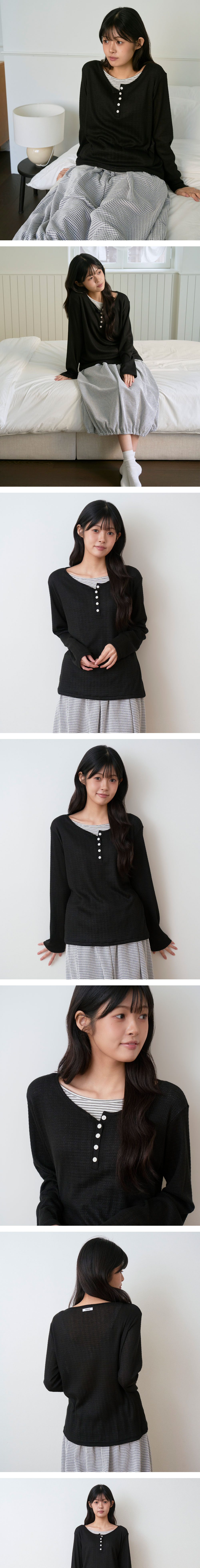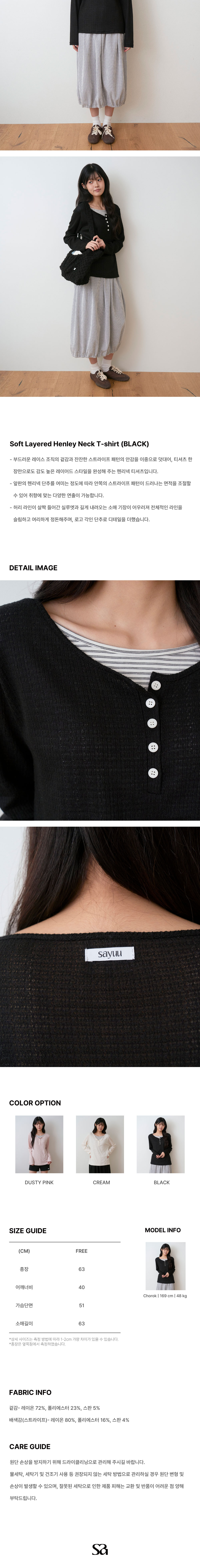 사유 소프트 레이어드 헨리넥 티셔츠 블랙