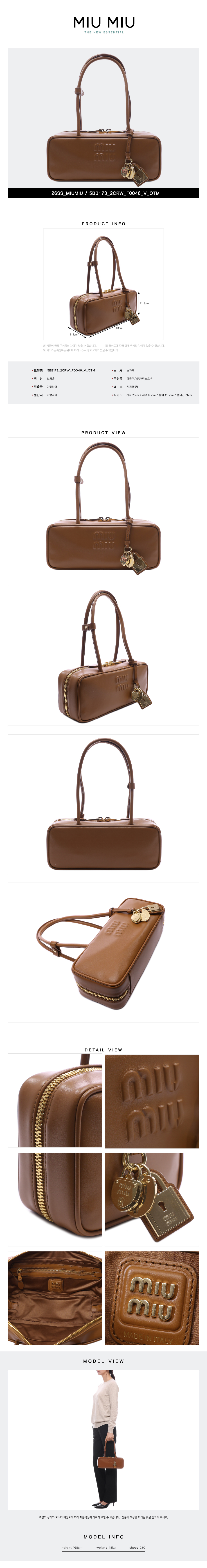 [20% 쿠폰] 미우 미우 레더 보 스몰 백 꼬냑