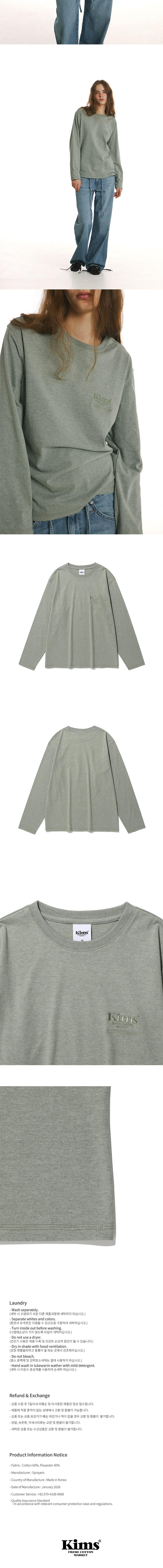 킴스프레시코튼마켓 미니 밤 라인 로고 롱슬리브 긴팔티셔츠 카키