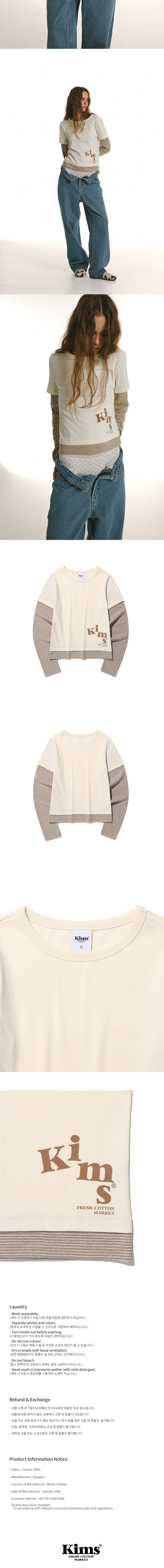 킴스프레시코튼마켓 뮤즈 스트라이프 레이어드 롱슬리브 긴팔티셔츠 크림