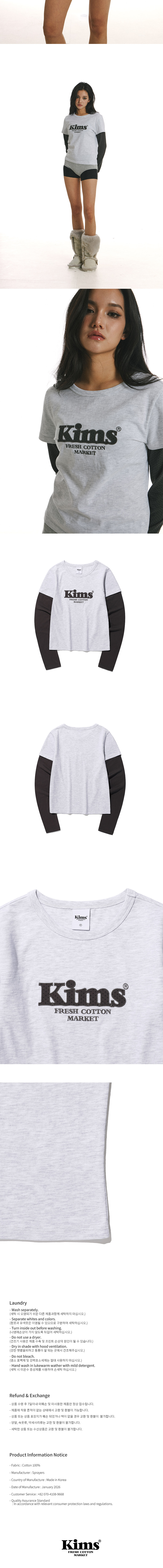 해당 제품은 반팔 티셔츠를 겹쳐 입은 듯한 레이어드 디자인으로 스타일링의 고민을 덜어주며, 소매 부분에 사용된 유니크한 도트 원단을 킴스의 시그니처 로고 아플리케에도 동일하게 적용하여 디자인의 완결성을 높였습니다. 해당 제품은 특징으로는 소매와 동일한 도트 원단을 킴스의 시그니처 로고 아플리케에도 그대로 접목시켰다는 점입니다. 자칫 평범할 수 있는 로고 플레이에 입체적인 텍스처를 더해 브랜드의 정체성을 더욱 밀도 있게 표현했으며, 이러한 세심한 소재의 통일감은 디자인에 높은 완성도와 세련된 안정감을 부여합니다. 몸을 부드럽게 감싸는 실루엣은 레이어드 디자인임에도 불구하고 부해 보이지 않는 깔끔한 핏을 유지해주어, 단독 착용만으로도 충분히 갖춰 입은 듯한 느낌을 줍니다.