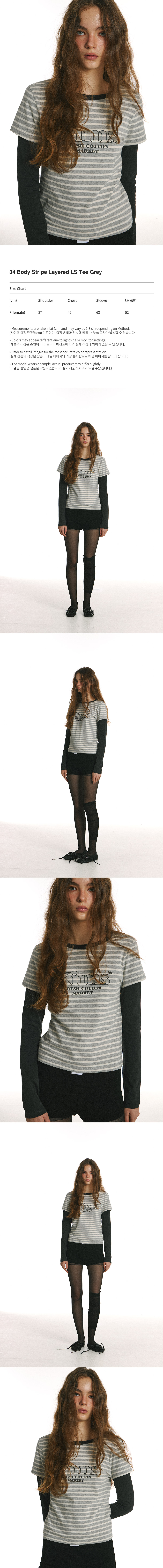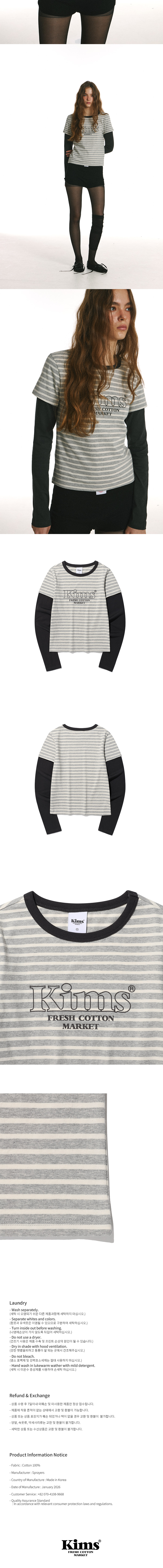 킴스프레시코튼마켓 34 바디 스트라이프 레이어드 롱슬리브 긴팔티셔츠 그레이