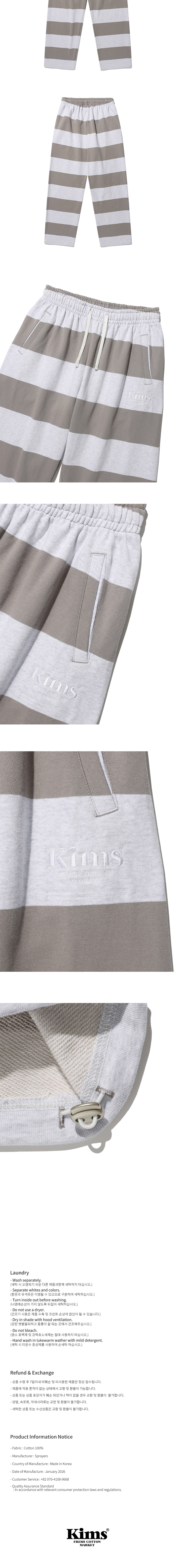 해당 제품은 지난 25FW 시즌, 후드티와 후드집업으로 선보여 많은 사랑을 받았던 스트라이프 소프트 쭈리 원단을 그대로 사용하여 제작된 스웻팬츠입니다. 검증된 소재의 부드러운 터치감과 포근함을 하의에서도 고스란히 느낄 수 있어, 세트 코디는 물론 단독 활용으로도 탁월한 존재감을 드러냅니다. 시선을 사로잡는 굵직한 볼드 스트라이프 패턴은 자칫 단조로울 수 있는 스웻팬츠에 확실한 디자인적 포인트를 더하며,일상 속에서도 킴스만의 경쾌하고 감각적인 무드를 완성해 줍니다.