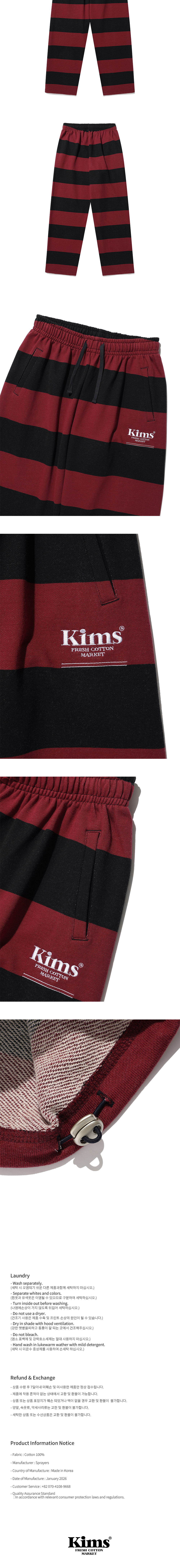 해당 제품은 지난 25FW 시즌, 후드티와 후드집업으로 선보여 많은 사랑을 받았던 스트라이프 소프트 쭈리 원단을 그대로 사용하여 제작된 스웻팬츠입니다. 검증된 소재의 부드러운 터치감과 포근함을 하의에서도 고스란히 느낄 수 있어, 세트 코디는 물론 단독 활용으로도 탁월한 존재감을 드러냅니다. 시선을 사로잡는 굵직한 볼드 스트라이프 패턴은 자칫 단조로울 수 있는 스웻팬츠에 확실한 디자인적 포인트를 더하며,일상 속에서도 킴스만의 경쾌하고 감각적인 무드를 완성해 줍니다.