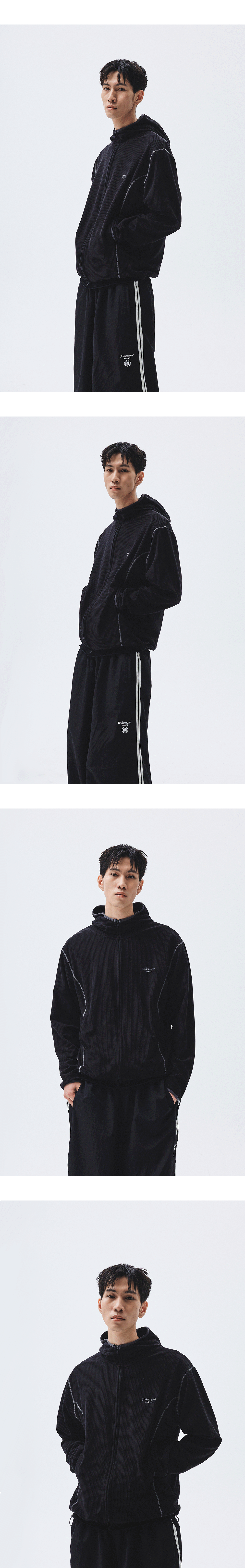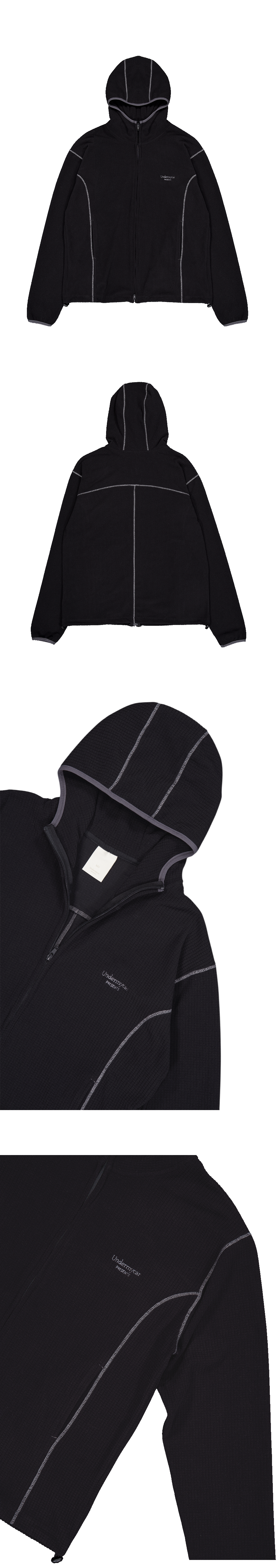 언더마이카 무.164 클래식 로고 와플 웜 후드 집업 블랙
