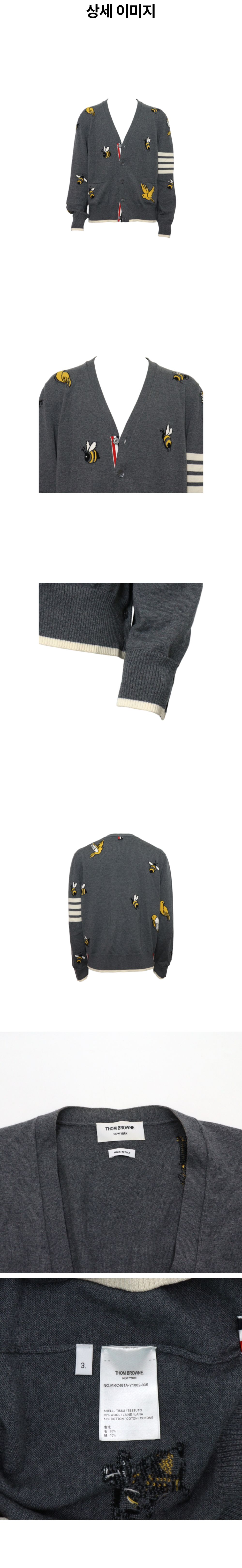 톰브라운 MKC451A 버드 앤 비 그레이 메리노울 사선완장 남성 가디건aa60560
