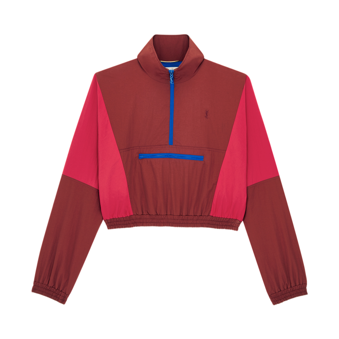 (W) Saint Laurent Cassandre Cropped Windbreaker in Nylon Faille Rouge Fonce