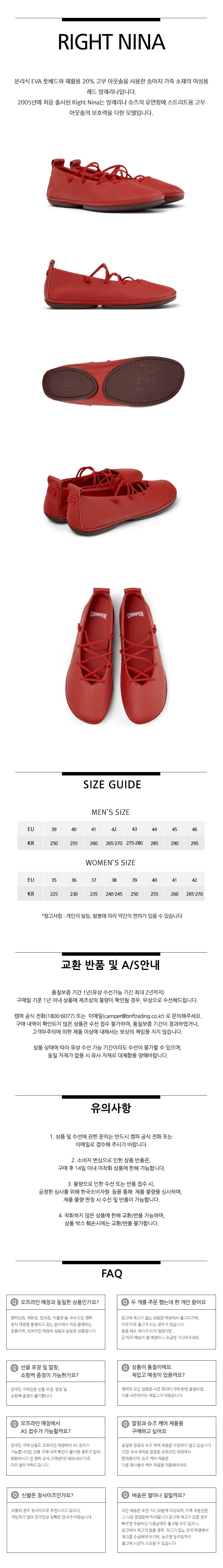 캠퍼 여성 라이트 니나 플랫슈즈 레드
