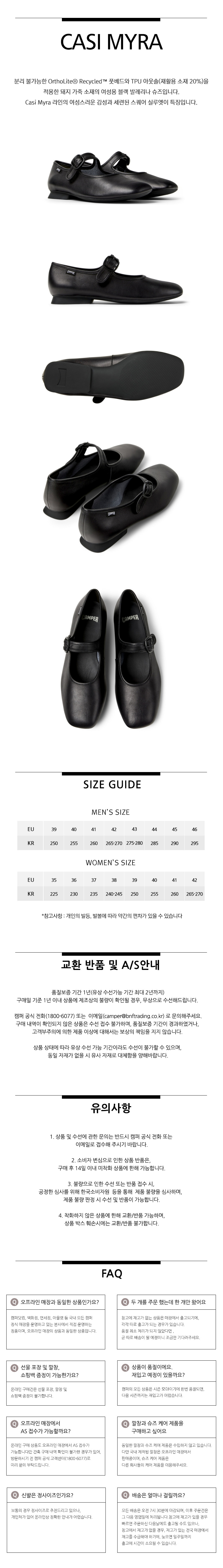 캠퍼 여성 카시미라 플랫슈즈 블랙