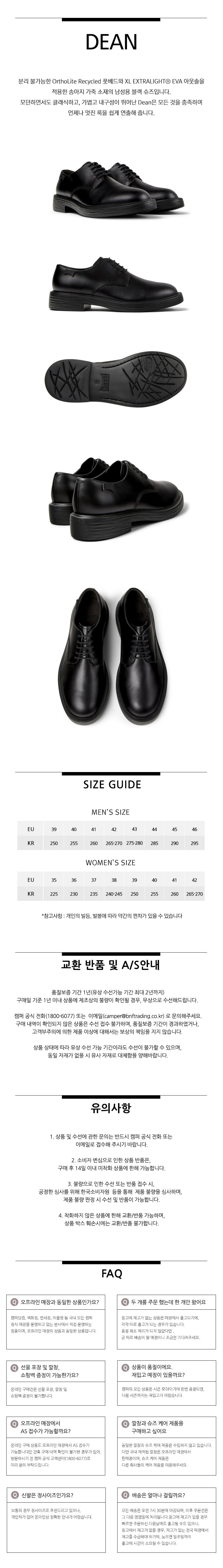 캠퍼 남성 딘 정장화 블랙