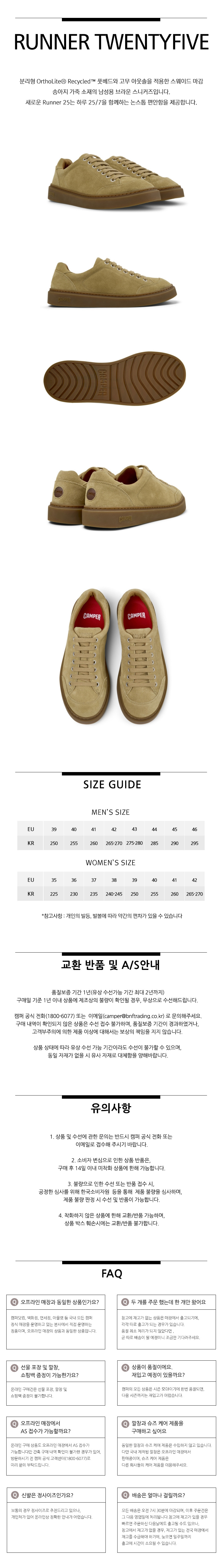 캠퍼 남성 러너 트웬티파이브 스니커즈 베이지