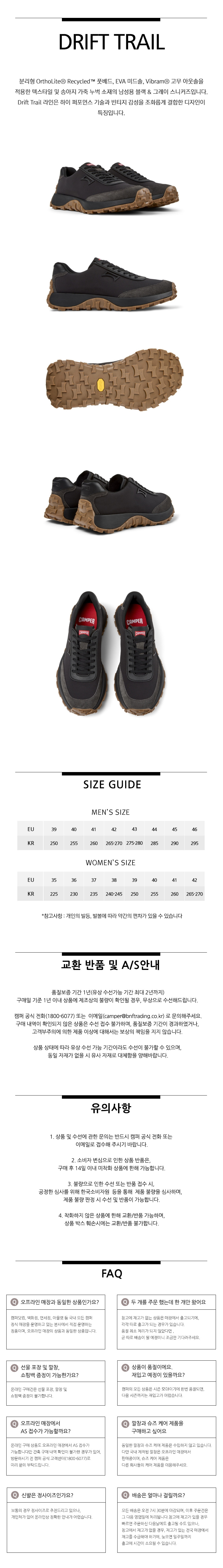 캠퍼 남성 드리프트 트레일 스니커즈 블랙