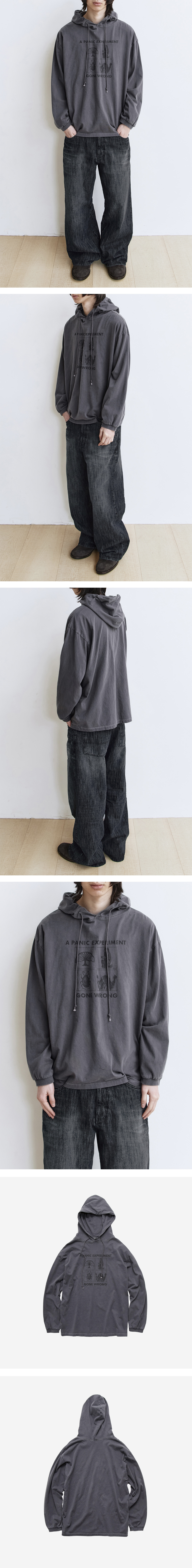 graphic hooded long sleeves '4 frame' 90년대 밴드 티셔츠 레이아웃을 재해석한 그래픽을 전면에 적용한 후드 롱슬리브. 오랜 시간 입은 자연스러운 분위기를 가진 후디로, 사용감이 강조되는 복합적인 워싱 가공을 통해 빛바랜 질감을 표현했습니다. 특유의 드레이프 및 부드러운 소재감을 적용하며, 어깨부터 자연스레 떨어지는 실루엣이 특적 입니다. 레이어드 및 단품 모두 활용할 수 있는 두께감으로 완성하여, 시즌에 구애받지 않고 다양한 스타일링에 활용하기 용이합니다. *모델: 178cm / 마른 체형, 3사이즈 착용