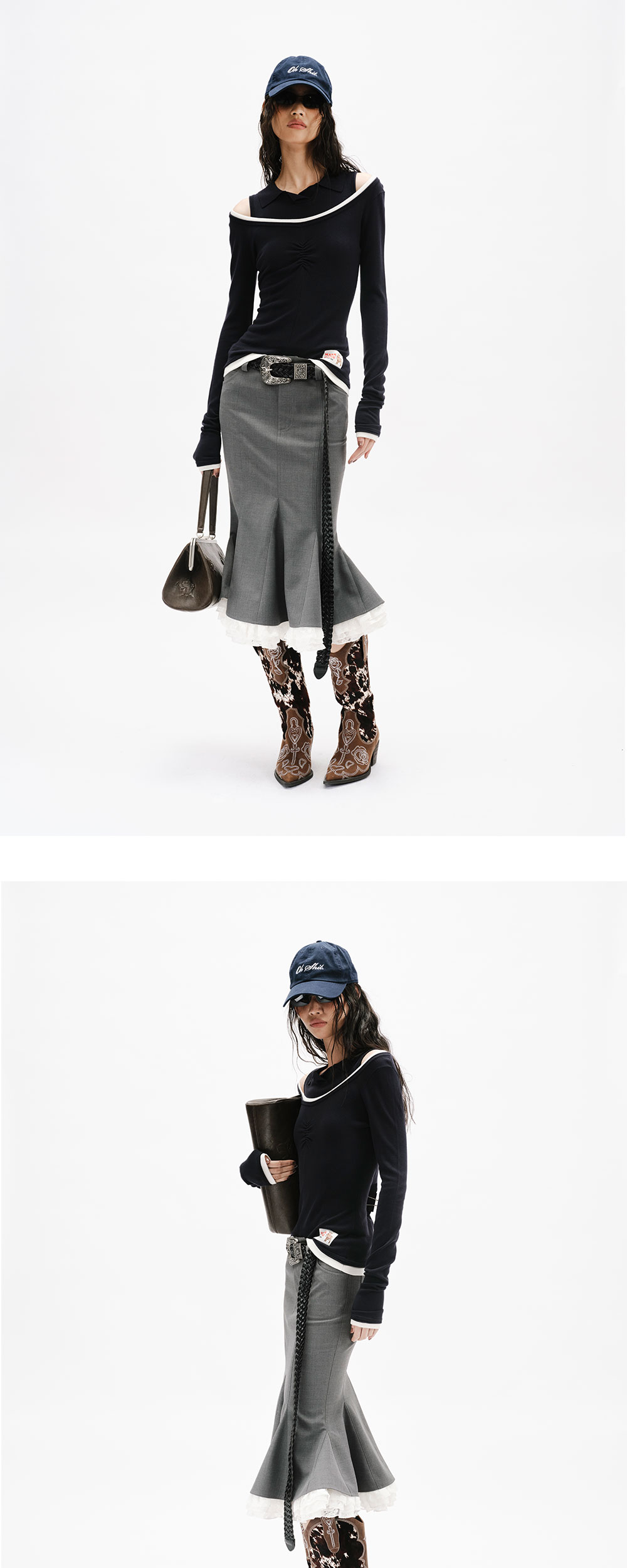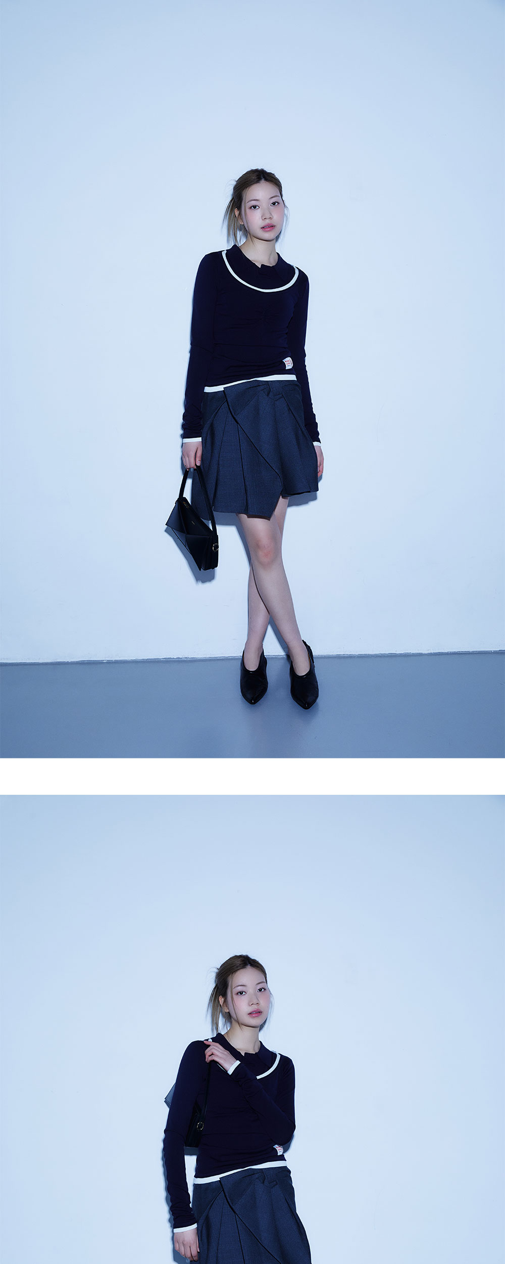 마크공 우먼 네이비 블루 투인원 니트 레이어드 탑 네이비 블루 - 26SS